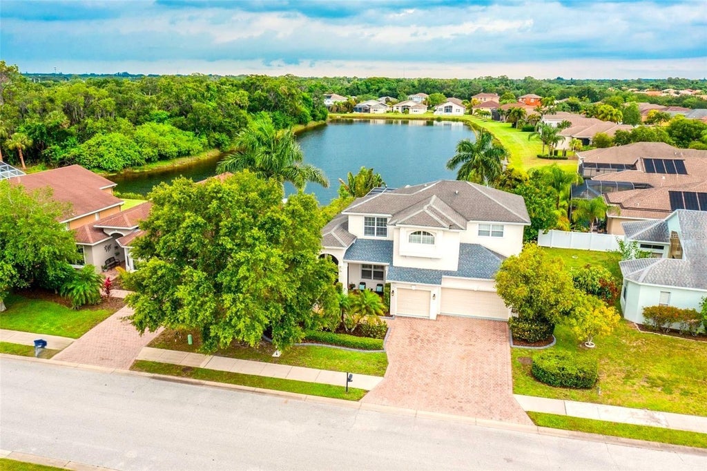AVAILABLE OCT 30, 2025. Sarasota Annual Unfurnished Single-Family Pool Home! *PLEASE NOTE: FURNISHINGS SHOWN ARE FOR STAGING PURPOSES ONLY!* (The home is currently filled with boxes due to tenants preparing to move out). Centrally located between Sarasota and Manatee counties and situated in the beautiful Riomar Community. There are 5 bedrooms, 4 bathrooms, and an extended, screened lanai with a heated saltwater pool and spa, overlooking the serene lake. The Master bedroom is located on the ground floor, it has two walk in closets equipped with California closet systems, the renovated master bath features two custom-built vanities with soft close drawers and quartz counter tops. Porcelain tile floors, and a large rain shower, plus separate soaking tub. As you make your way up the beautiful staircase to the second floor, there is wood-look luxury vinyl flooring throughout every room. The 4 additional bedrooms and a bonus room provide ample space for guests, a home gym or leisure room. On the ground floor, there is also an office with built in office furniture, ready for home-office worker! The home also has a 3-car garage. Only 15 minutes to Downtown Sarasota, only 10 minutes to the highway, only 25 minutes from Sarasota’s beautiful Gulf Coast beaches and only 10 minutes to UTC shopping and dining. *EXTERIOR FRONT HAS SOME SLIGHT COSMETIC DAMAGE TO DECOR ABOVE GARAGES AND FRONT BEDROOM WINDOW SOFFIT DUE TO LAST YEARS HURRICANE. TENANT OCCUPIED, 24 HOURS NOTICE NEEDED TO SHOW.